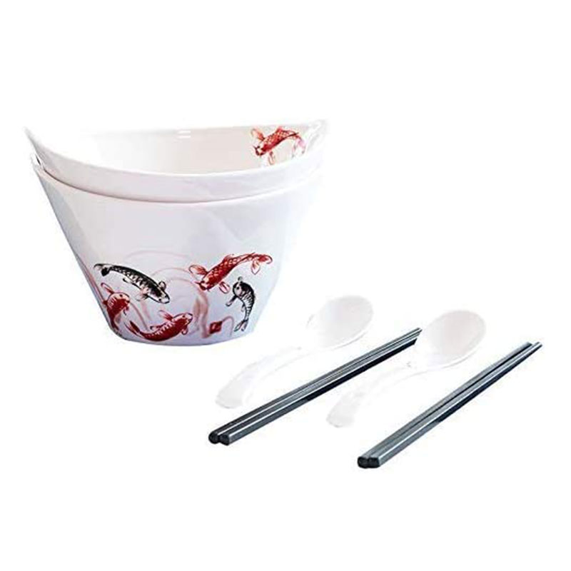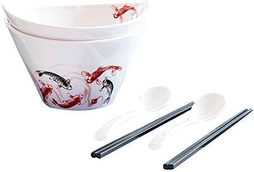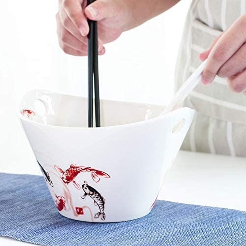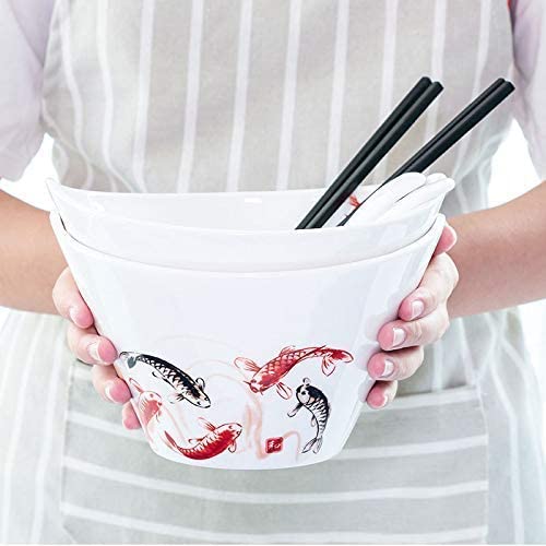 The ceramic ramen bowl is ideal for pho, ramen noodle, and miso soups. If you want to use these ramen bowls to hold some salad, pasta, snack and etc, that is also great. Besides, the porcelain ramen bowl features a unique design. On the surface of the ramen bowl, there is painted with fish designs.