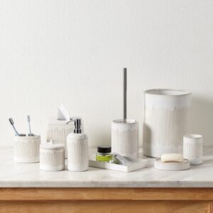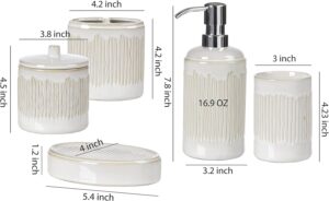 Set of 5 Ceramic bathroom set contain cotton jar, soap dish,tumbler,toothbrush holder and soap dispenser.