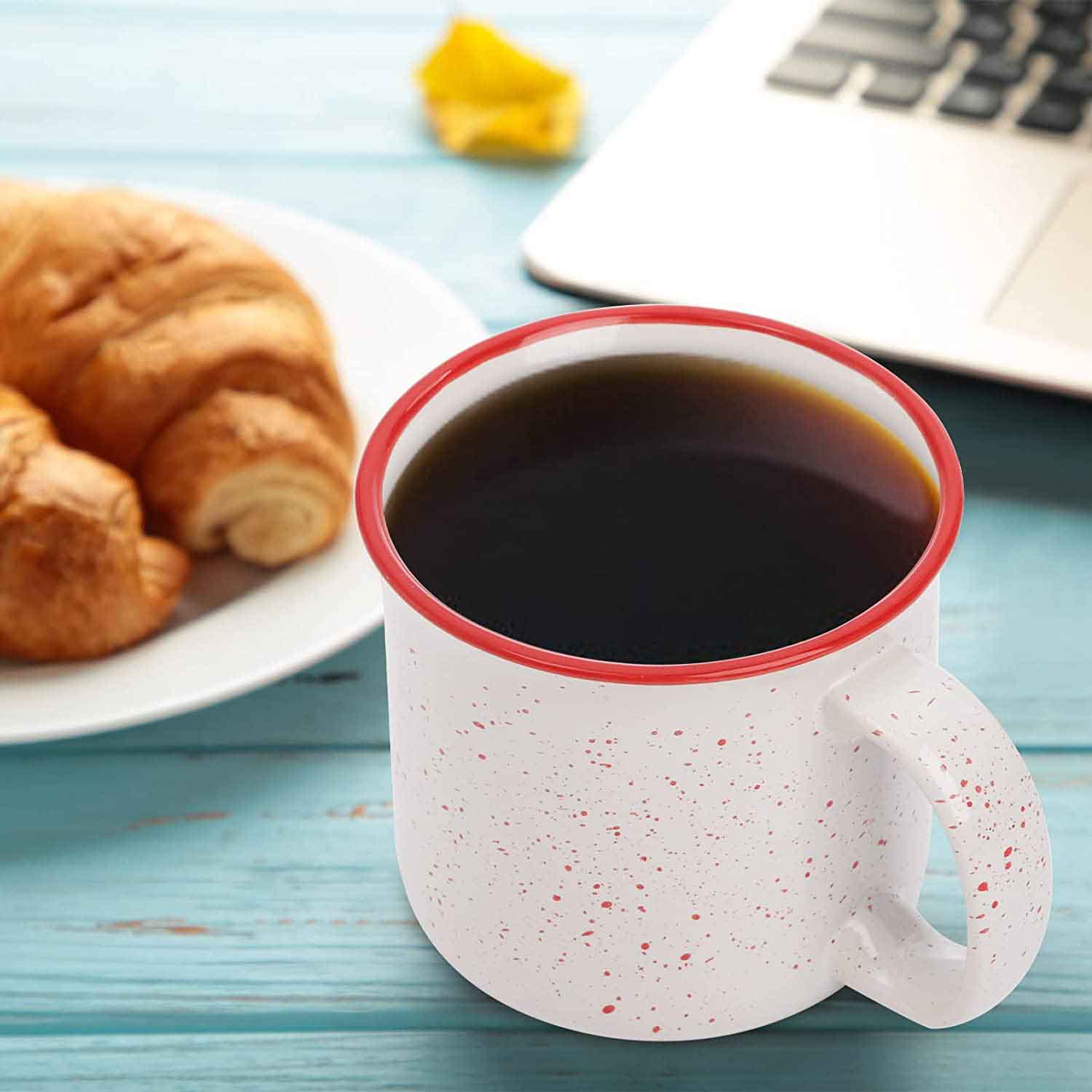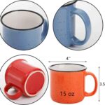 Each ceramic camping mug measures 4 inch top diameter and 3.5 inch height, 15 oz. Our camping mugs are made by high quality ceramics, which keep it not easy to fade and can last for longer time. The porcelain camping cup can fit your hand perfectly, easily enjoy your favorite hot or cold beverage. Mocrowave and dishwasher safe. It is available in red, white, blue, deep blue, green and orange.You can send the ceramic camping cup to your friends or family as a gift.