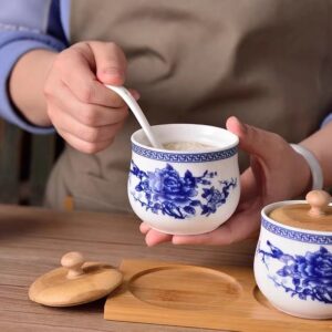 The glamorous blue and white porcelain will complement on any home decor. It’s a perfect Mother’s day/housewarming/ Valentine’s Day present for family, friends, colleagues, classmate. Meanwhile, the featured Chinese spice jar is great gift idea as promotional gift, giveaways, souvenir and so on. The natural appearance of the natural bamboo lids and tray blends beautifully with the color of the canisters. This combination will match any decor.