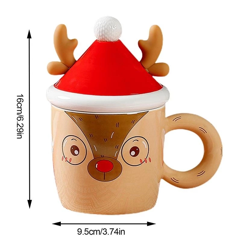 The Christmas ceramic mug is in the shape of a cute reindeer wearing an antler Christmas hat. The piece features some classic Christmas elements to add a strong festive atmosphere. All of the reindeer cups are made by high-temperature firing ceramics and come with a fine texture and smooth glaze, which keep it not easy to crack. These ceramic mugs are not only perfect to drink coffee, milk, water, cocoa, but also are charming decorations for Christmas.